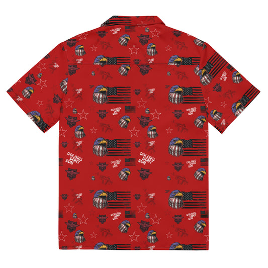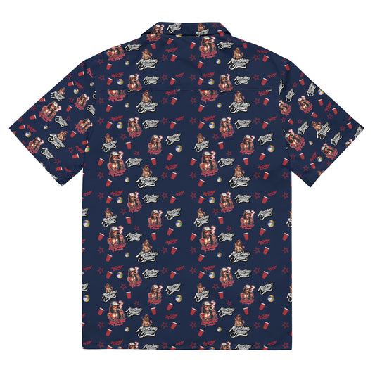 (132 BEACH BUTTON-UP) RED WHITE BOOZED • Oversized fit